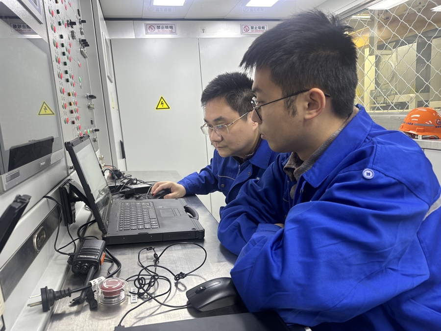 秦元和徐傲正在为盾构调试“大脑”。 戚颖璞 摄