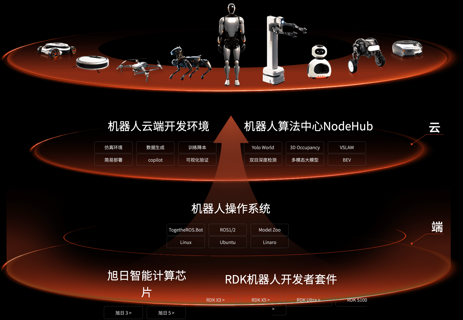 具体来看就是,面向泛机器东谈主和具身智能打造芯片,提供RDK机器东谈主拓荒者套件,在此基础上组建机器东谈主操作系统、机器东谈主算法中心、包括数据标注到仿真考证的数据处置决策,通过这么的组合把机器东谈主研发的底层难度抹平,让更多厂商、拓荒者不必重新造轮子,处事好机器东谈主公司。