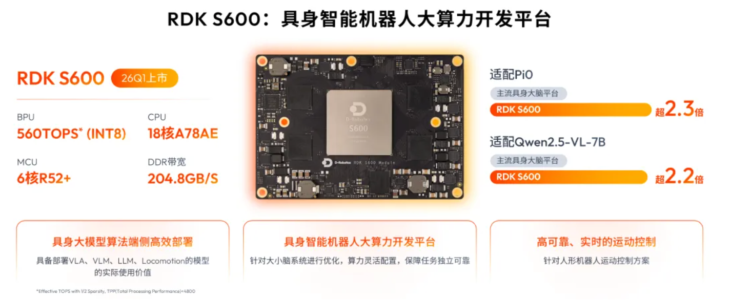 具体来看,其芯片布局了X、S两大系列,X系列主要用于得志泛机器东谈主行业、耗尽类机器东谈主,S系列是面向具身智能的大算力芯片。
