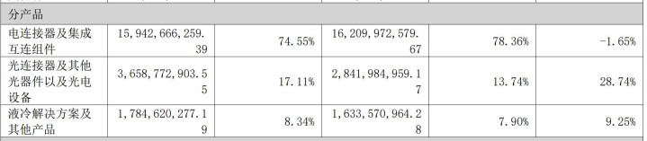 分业务来看,2025年光畅通器特殊他光器件业求齐全收入36.59亿元,同比增长28.74%;电畅通器及集成互连组件收入为159.43亿元,占营业收入比例为78.36%;液冷照顾有打算特殊他家具收入为17.85亿元,同比增长9.25%。