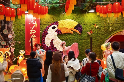 农历大年月朔,广州河汉路商圈飘溢着浓浓的年味。走进正佳广场,千盏花灯交相衬映,遍地能遇上身着汉服的市民前来拍照打卡,舞台上时时传来阵阵动荡古韵,还有杂耍魔术引得里三层外三层的不雅众惊呼喝彩,盛唐风华与岭南年味在此和会共生。