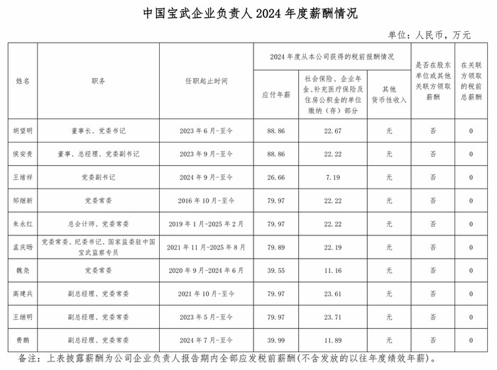快乐飞艇 中国宝武知道2024年度高管薪酬,董事长最高111.5万元