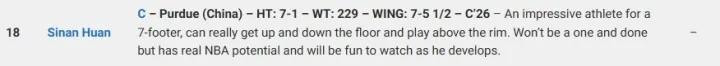该网站如斯评价郇斯楠:行为别称身高进步7尺的球员,他的教训才智让东谈主印象深切,大约自如在场上出动并在篮筐上方打球,他的确具备NBA后劲。