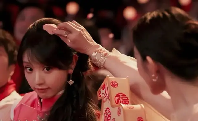 当十月芙蓉花神王楚然怀抱琵琶,指尖流转出清越乐音时,舞台上AI生成的花瓣如有了生命般簌簌飘落。 其中几片,竟穿越了虚拟与施行的范畴,轻飘地落在了不雅众席中田曦薇的发梢。 坐在一旁的张钧甯天然地伸脱手,和善地为她拂去。 镜头捕捉到三东说念主眼神交织的转眼,田曦薇酒涡浅现,眼神发亮,张钧甯报以含笑。 这个发生在舞台以外、未经筹画的互动,被大批网友称为当晚最动东说念主的“神级转场”。 它莫得一句台词,却比任何尽心编排的剧情都更有劝服力。