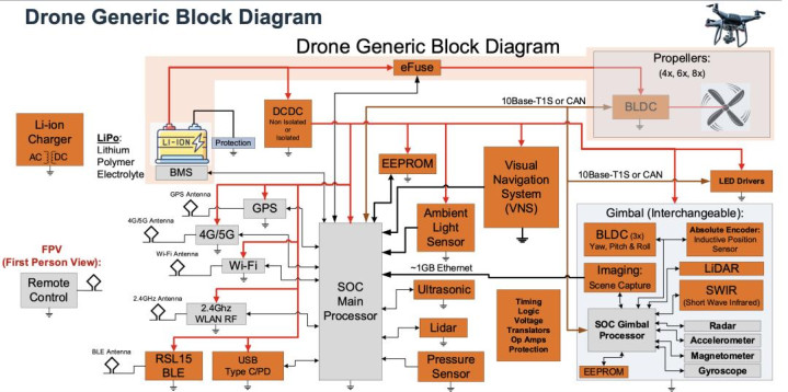 ◎ 能源系统由 BLDC 电机启动多组螺旋桨,同期可搭载可更换云台系统,集成 BLDC 云台电机、成像模块、激光雷达、SWIR 及惯性测量单位(IMU)等,杀青踏实拍摄与多模态感知,举座通过高速总线(如 1GB 以太网、10Base‑T1S 或 CAN)杀青各子系统间的高效数据交互。