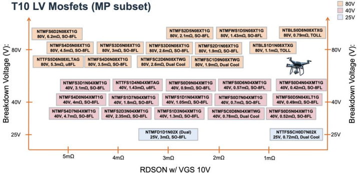 ◎ 在功率开关器件方面,T10系列MOSFET导通电阻低至 0.42mΩ,导通电阻越低,发烧越小,恶果越高,续航时间越长。