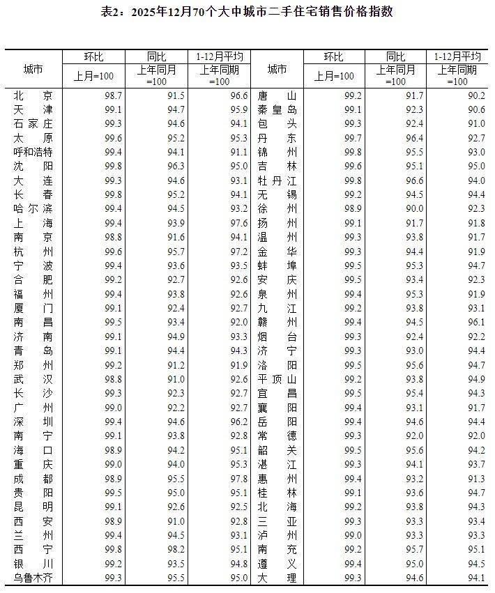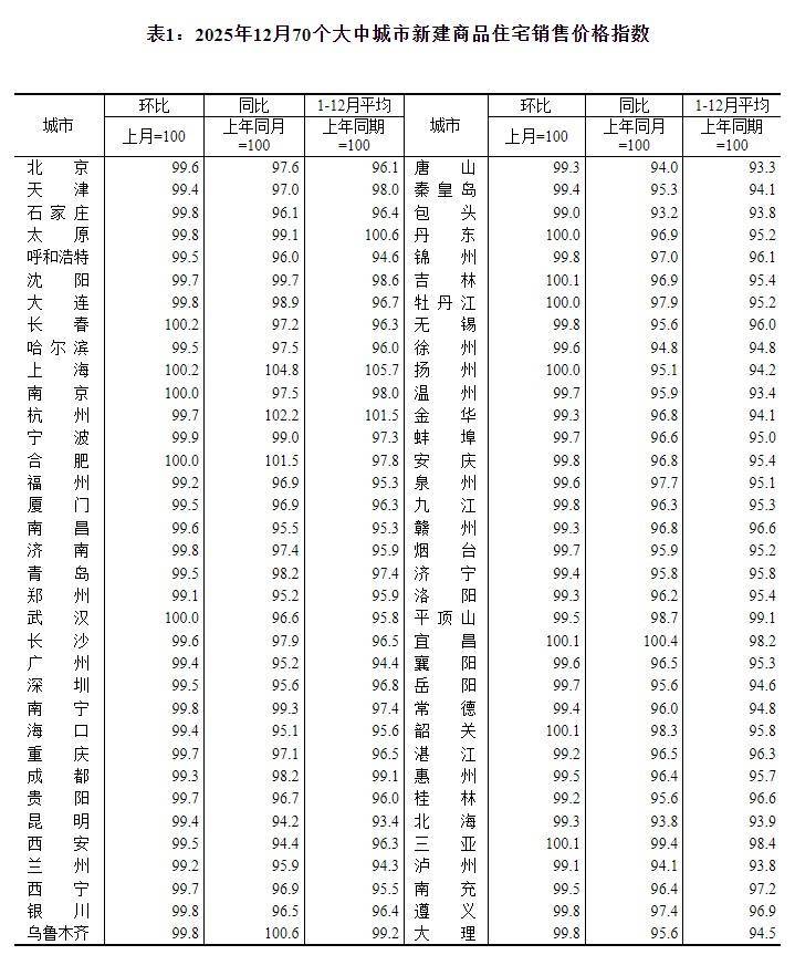 2025年12月份,70个大中城市商品住宅销售价钱环比总体下落、同比降幅扩大。