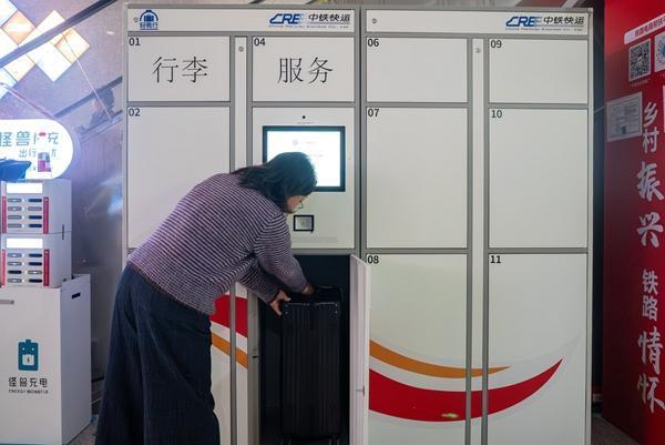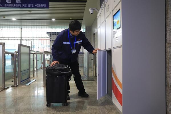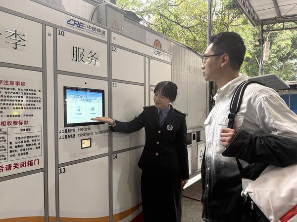 在南宁车站出站口处,使命主谈主员斥地游客使用“轻装行”劳动。汪璐璐摄