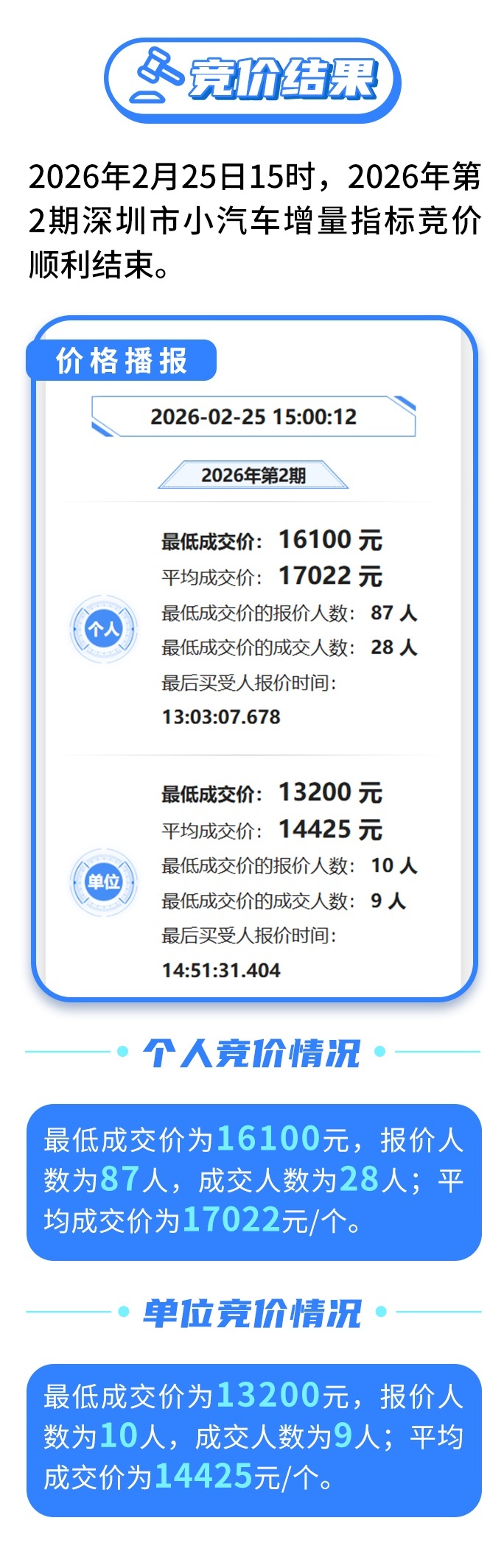 2026年第2期粤B办法竞价效果出炉,个东谈主最低成交价16100元;单元最低成交价13200元。