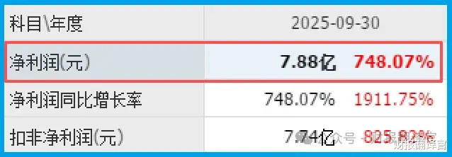 三季度如故赚了7.88亿,同比增长748%。全年预增3倍,三季度就把活干完毕。
