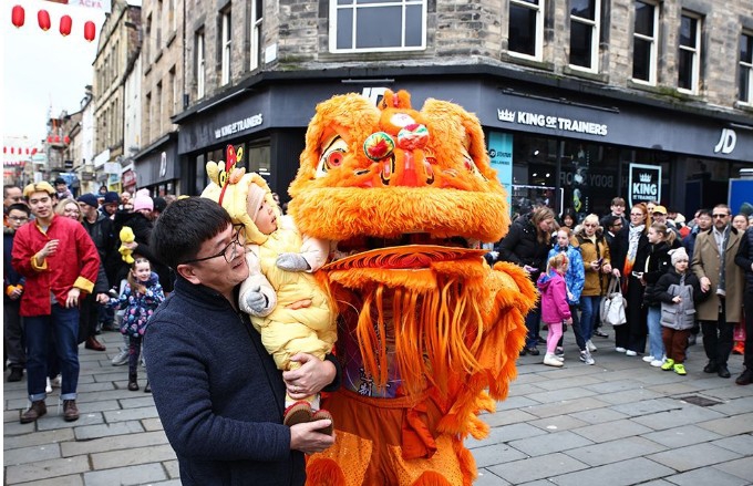 {jz:field.toptypename/}仪式上,逾百名艺术家次序登台,杂技、传统民乐、中国跳舞、技击扮演交相照映;金龙红狮穿行在中心街谈,快乐飞艇与沿街不雅众击掌互动,为兰卡斯特增添了浓厚的春节氛围。
