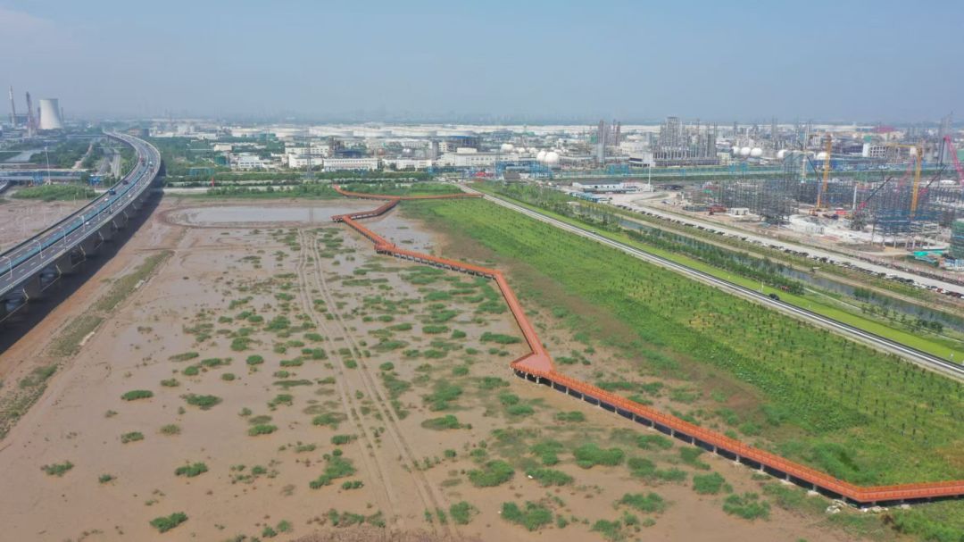 这里面对东海滩涂,一边是赛博工场,一边是生态走廊,邃密的湿地生态环境让这里成为一张靓丽的城市柬帖。