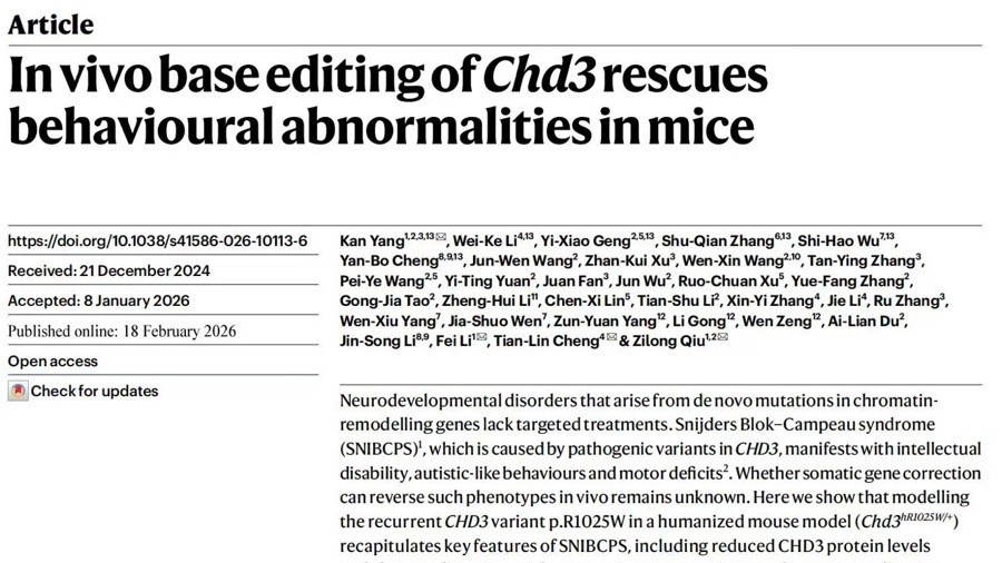 以自闭症为代表的神经发育性疾病,困扰着大量家庭,历久以来“无药可用”的逆境让患者家庭包袱千里重的身心与经济压力。北京时代2月19日凌晨,海外巨擘学术期刊《当然》在线发表一项重磅恶果,为这类疾病的基因诊治带来打破性推崇。该探求考证了脑内精确基因裁剪的可行性,更让人人神经发育疾病患者家庭看到了诊治的晨曦。