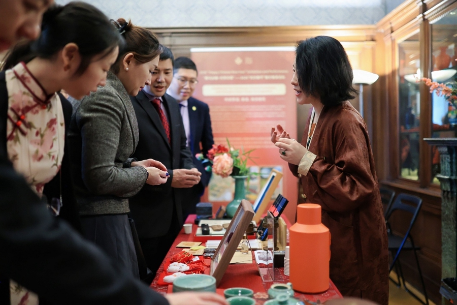 2月12日下昼,疏通团又马握住蹄赶赴中国驻卢森堡使馆参与“这里有爱·四海一家”春节招待会。现场,中国新年元素举目即及,狮舞欢畅、锣饱读喧天,为行径增添了浓烈炫概念颜色。海派杂技、海派魔术、川巨变脸及二胡艺术等传统非遗纠合亮相,取得阵阵喝彩声。接着,嘉宾们体验了套板葫芦,在茶说念香说念体验中制作香牌,品鉴沏茶身手,同期通过古旧木器修缮身手聚焦榫卯奢睿,晓悟及第木作匠心。