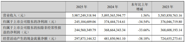2023年至2025年,莱宝高科生意收入分袂为55.86亿元、58.96亿元、59.87亿元,包摄于上市公司激动的净利润分袂为3.76亿元、3.74亿元、2.45亿元,包摄于上市公司激动的扣除十分常性损益的净利润分袂为3.69亿元、3.69亿元、2.45亿元,倡导当作产生的现款流量净额分袂为7.25亿元、4.82亿元、2.98亿元。